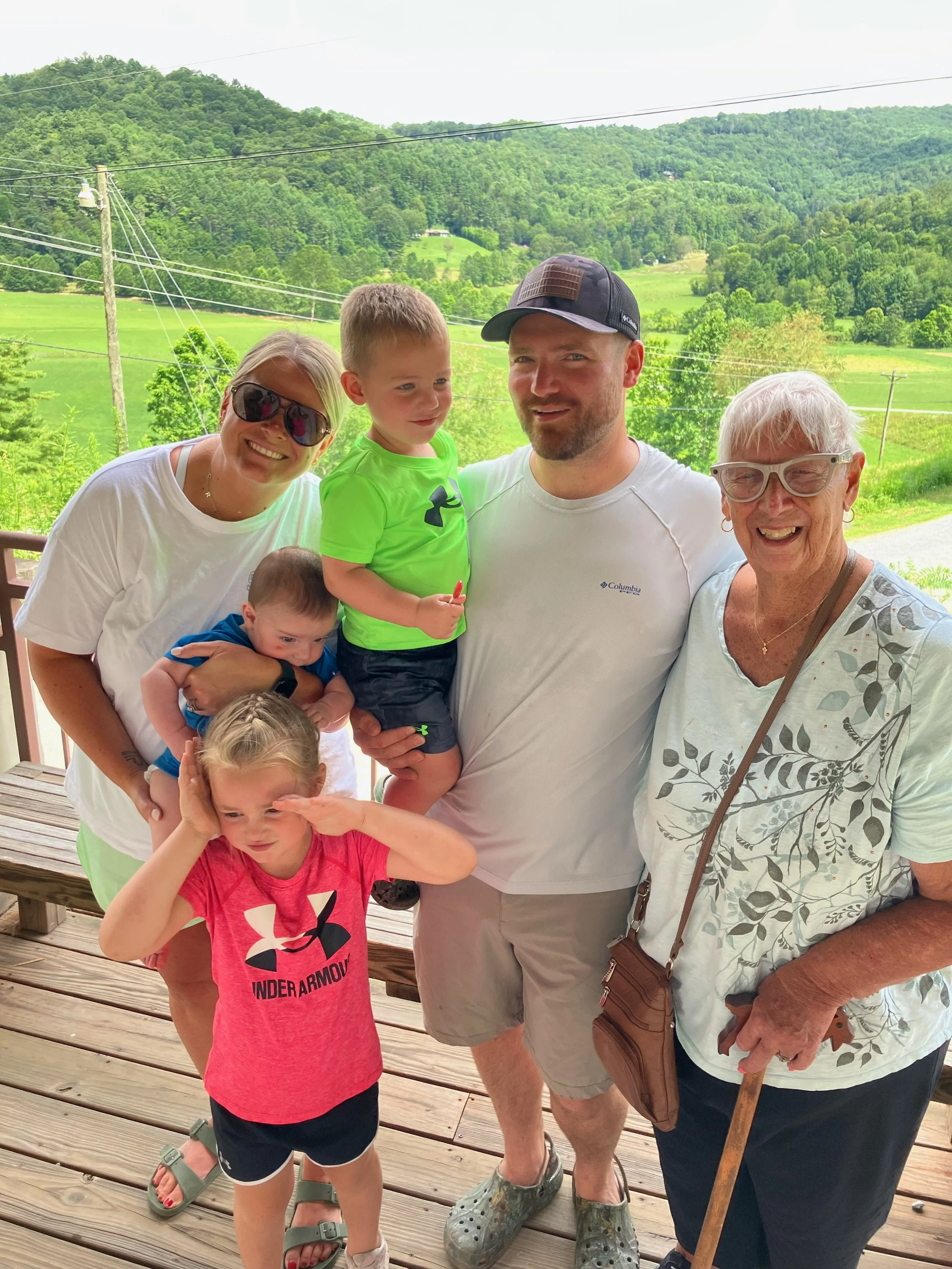 Phyllis Pritchett shown with her grandson Cody Orr and his wife, Taylor, of Pittsboro, and great-grandchildren Remi, Colt, and Crew during a recent family vacation in North Carolina.