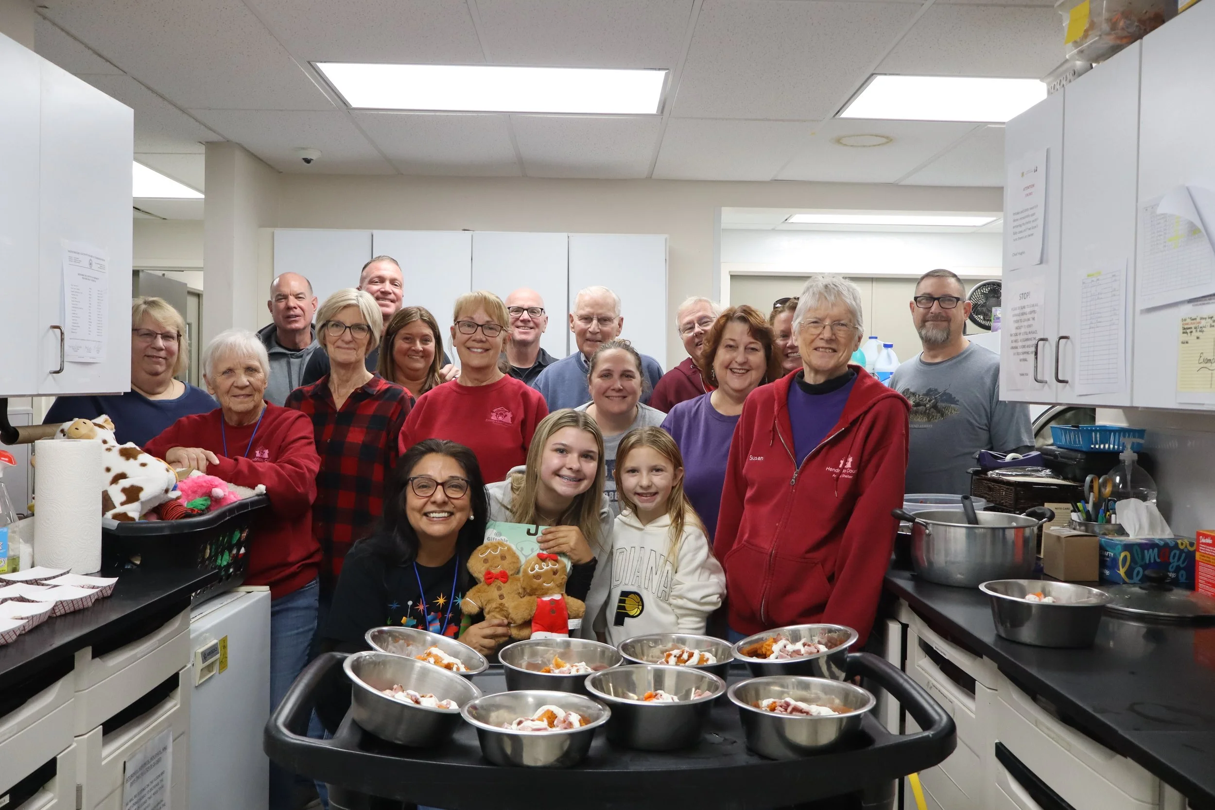 As is tradition, Hendricks County Friends of the Shelter volunteers, along with several shelter staff members and volunteers, prepared a Christmas feast for the animals spending their holiday waiting for forever homes.