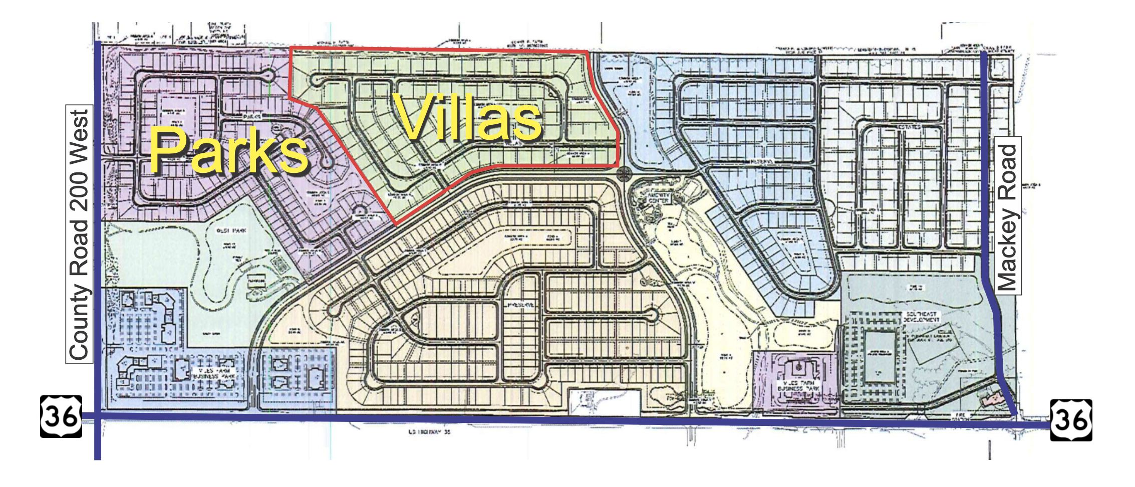 Another district in the PUD is the Villas. The town and the builder agreed that there could be up to a 186 units built as duplex or paired patio homes. It was also agreed that this would be a HUD approved 55 and over age restricted community. HUD is the Housing and Urban Development department of the Federal Government. They allow age restricted communities if certain rules are followed.